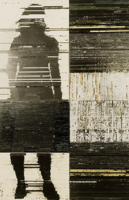 ...(this) work is presented as diptychs and give his subject a physical and mental representation at the same time. The figurative portrait is placed next to what he calls the "door of the signs" a sort of abstract mirror where only feelings, the psychological aspect and the intangible persist. In some works, the portrait disappears and only the silhouette remains, the subject is reflected in the door of the signs to become sometimes barely discernible....read more